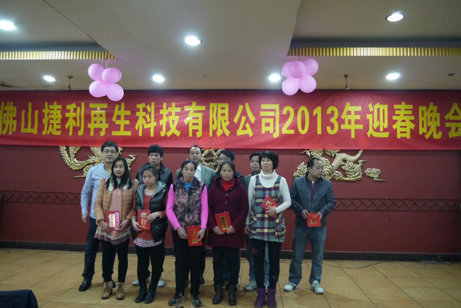 2013年2月23日晚,佛山捷利再生科技有限公司2013年迎春晚会在佛山市三水区大塘镇裕同山庄隆重举行。受邀的公司客户、供应商及友好人士和捷利全体人员一起出席了本次晚会。大家欢聚一堂,喜迎新春。晚会洋溢着欢乐祥和的气氛。