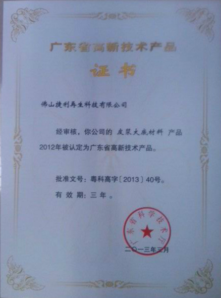 经过专家严格评选,2013年4月7日,广东省科技厅正式发文,授予我公司皮浆大底材料为2012年广东省高新技术产品。